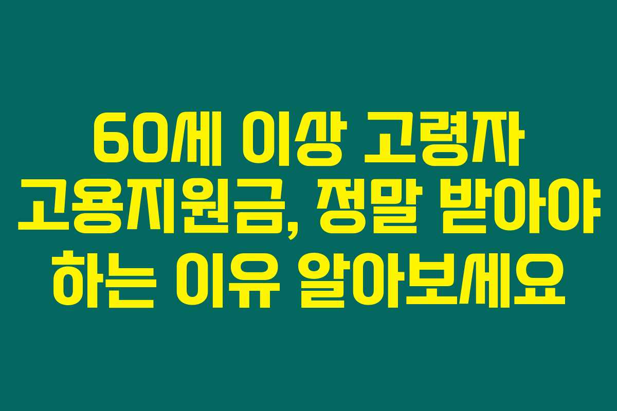 60세 이상 고령자 고용지원금, 정말 받아야 하는 이유 알아보세요