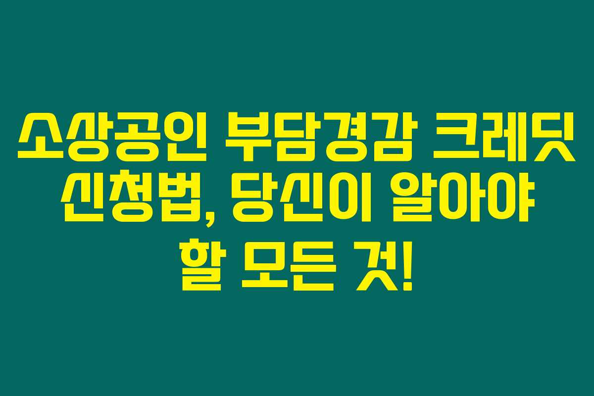 소상공인의 경제적 부담을 줄여주는 ‘부담경감 크레딧’에 대해 궁금하신가요? 아래를 읽어보시면 누구나 쉽게 이해할 수 있는 신청 방법과 혜택을 자세히 알아보실 수 있습니다. 이 제도가 어떻게 소상공인 여러분의 삶을 더 편리하게 할 수 있는지 함께 살펴보아요.