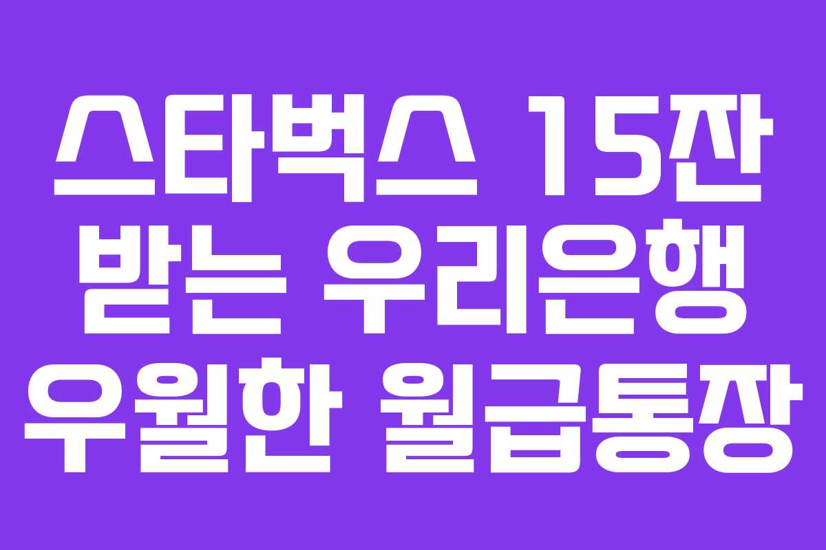 최근 다양한 은행들이 급여통장 유치를 위해 경쟁을 벌이고 있습니다. 그중에서도 우리은행의 ‘우월한 월급통장’은 특히 주목할 만한 이벤트를 제공하고 있습니다. 이 통장은 급여 이체만으로 매달 스타벅스 아메리카노를 제공받을 수 있는 기회를 제공하여 많은 관심을 받고 있습니다.