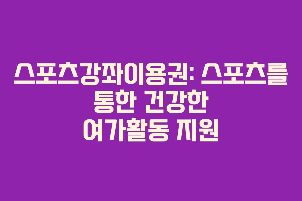 스포츠강좌이용권을 통해 건강한 스포츠 활동을 경험하며, 삶의 질을 향상시키는 기회를 놓치지 마세요!
