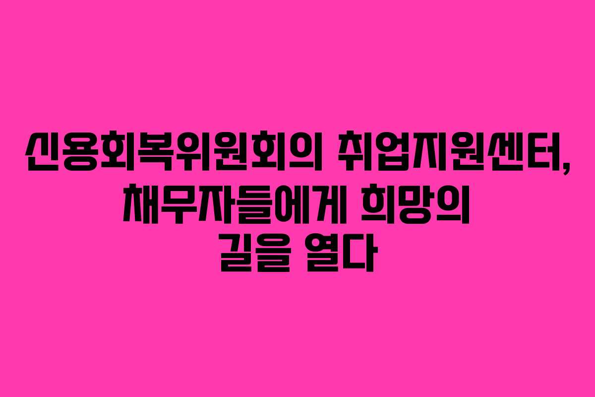 신용회복위원회의 취업지원센터는 채무자들에게 빚을 청산하고 새로운 시작을 할 수 있는 길을 열어주는 중요한 역할을 하고 있습니다. 이들이 제공하는 다양한 프로그램과 지원이 많은 이들에게 희망이 되기를 바랍니다.