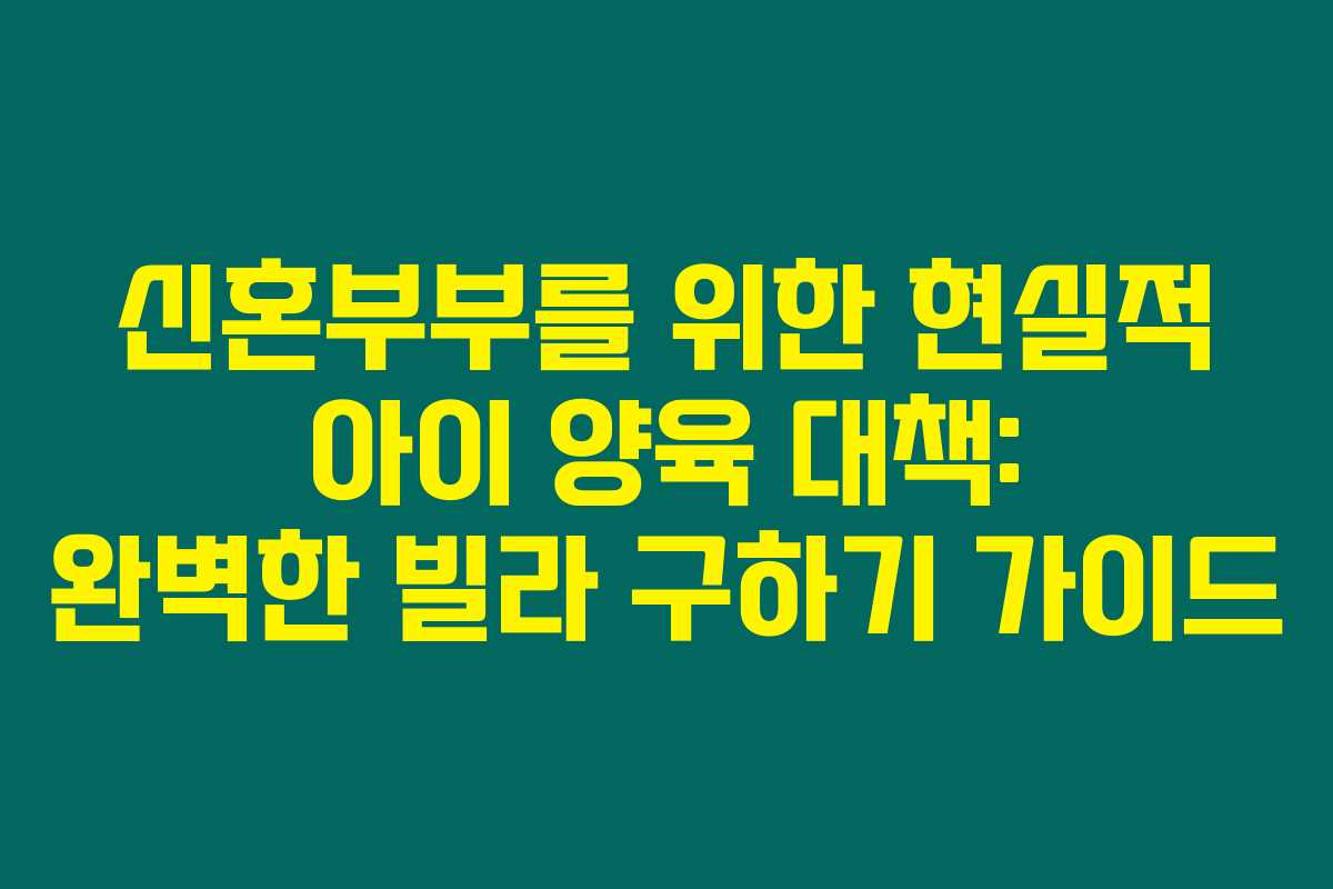신혼부부가 아이를 키우기 위한 현실적인 방법을 소개했어요. 빌라를 통해 안정된 생활을 꾸리고 필요한 자금을 모아 더욱 행복한 가정을 꾸려보세요. 더 궁금한 점이 있다면 언제든지 질문해주세요!
