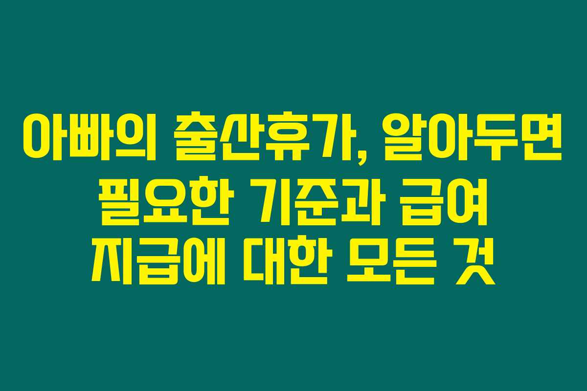 제가 직접 알아본 바로는, 배우자 출산휴가 제도는 아빠가 출산에 참여하고 아기를 돌보는데 필수적인 정책이에요. 최근에는 많은 기업들이 아빠가 출산휴가를 사용할 수 있도록 적극적으로 지원하고 있는데, 그 기준과 급여 지급에 대해 알아보려고 합니다. 아래를 읽어보시면 아빠로서의 역할과 휴가에 대한 이해가 한층 높아질 것입니다.