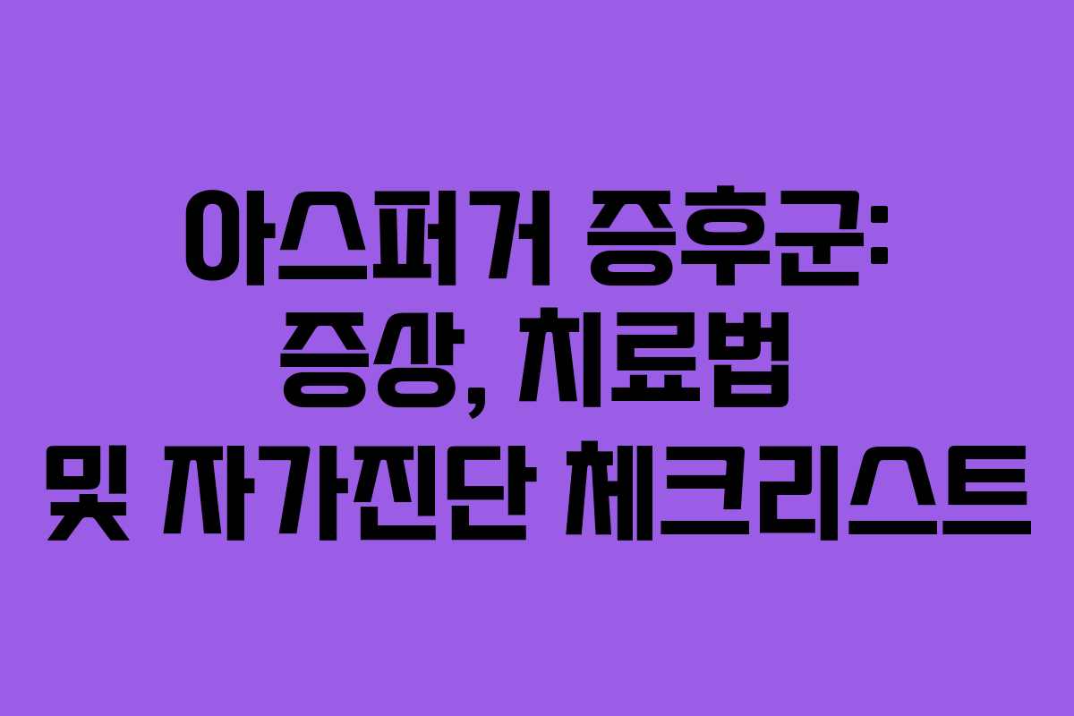 아스퍼거 증후군은 자폐 스펙트럼 장애의 일종으로, 주로 사회적 상호작용과 의사소통의 어려움을 겪는 특징이 있습니다. 이 글에서는 아스퍼거 증후군의 정의, 주요 증상, 치료 방법 및 자가진단 체크리스트를 자세히 살펴보겠습니다.