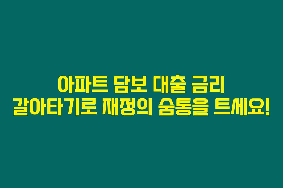 제가 직접 알아본 바로는 아파트 담보 대출의 금리 갈아타기가 재정적 부담을 크게 줄일 수 있는 효과적인 방법이에요. 최근 많은 사람들이 금리 상승 속에서 어려움을 겪고 있지만, 다행히도 대출 금리를 낮추는 방법이 있다는 것을 알고 계신가요? 아래를 읽어보시면 아파트 담보 대출 금리 갈아타기에 대한 유용한 정보와 함께, 재정적 절약 방법에 대한 다양한 팁을 소개할게요.