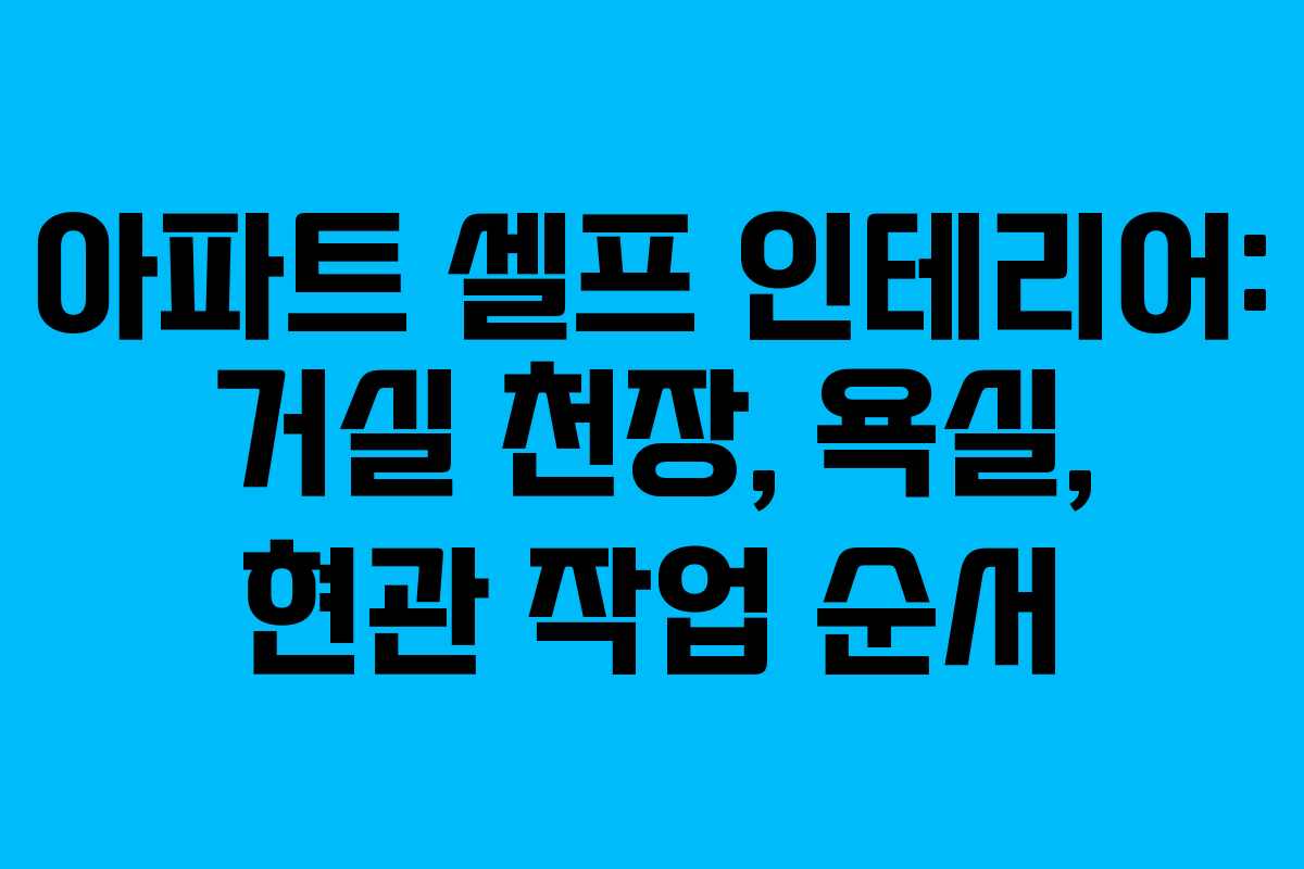 아파트 셀프 인테리어를 시작할 때 가장 먼저 고민해야 할 점은 작업 순서입니다. 각 공간마다 특성과 난이도가 다르기 때문에, 올바른 순서로 진행하는 것이 전체 인테리어의 완성도를 높이는 데 중요합니다. 아래를 읽어보시면 거실 천장, 욕실, 현관 작업의 최적 순서를 소개합니다. (2025-08 기준)