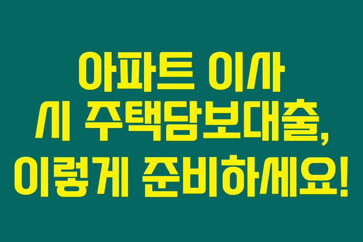 제가 경험해본 바로는, 주택담보대출을 통해 아파트 이사를 성공적으로 진행할 수 있는 전략이 많이 있습니다. 이사라는 큰 사건을 앞두고 있는 분들에게 도움이 되길 바라며, 더 많은 정보가 필요하면 추가로 확인해보세요.