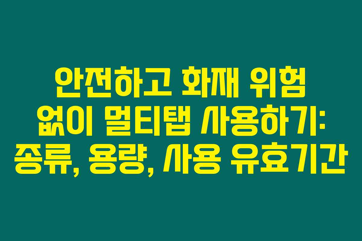 안전하고 효과적으로 멀티탭을 사용하여, 화재 위험을 최소화하고 우리의 전자기기를 안전하게 이용해 보도록 해요! 멀티탭은 우리의 생활을 매우 편리하게 만들어주는 도구이지만, 안전한 사용이 가장 중요하다는 것을 잊지 마세요.