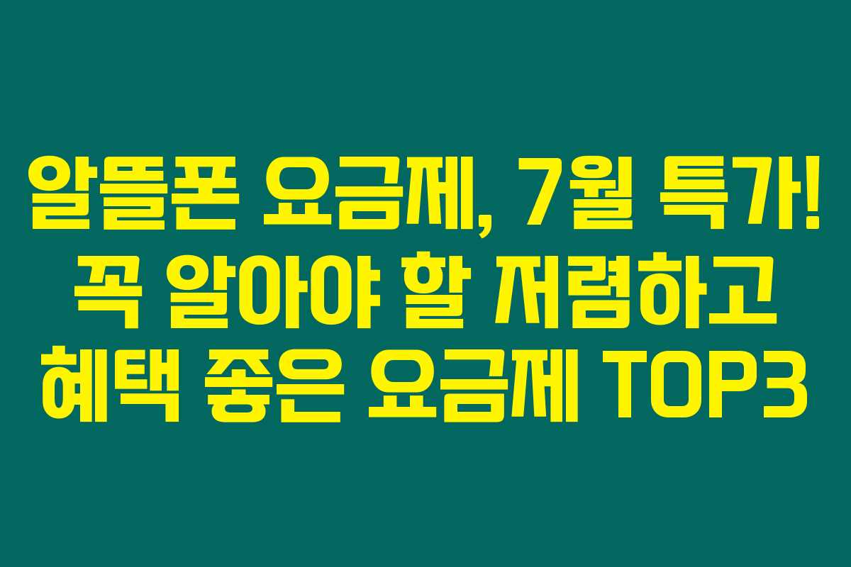 알뜰폰 요금제, 7월 특가! 꼭 알아야 할 저렴하고 혜택 좋은 요금제 TOP3