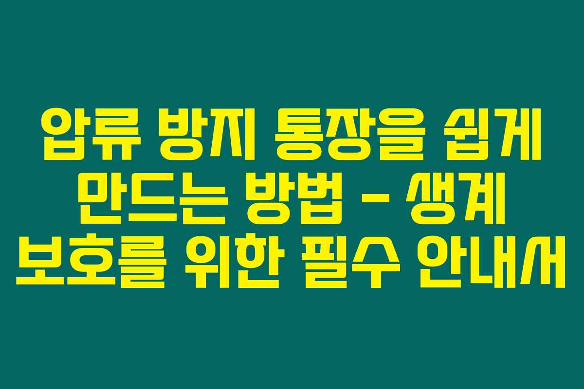 제가 직접 알아본 바로는, 압류 방지 통장은 경제적으로 어려운 상황에서 법적으로 보호받는 계좌로, 압류로부터 최소한의 생계비를 지킬 수 있는 중요한 수단이에요. 특히 기초생활보장 수급자나 장애인, 고령자들에게 필수적인 제도랍니다. 아래를 읽어보시면, 통장을 만드는 방법과 필요한 서류를 상세히 안내드릴게요.