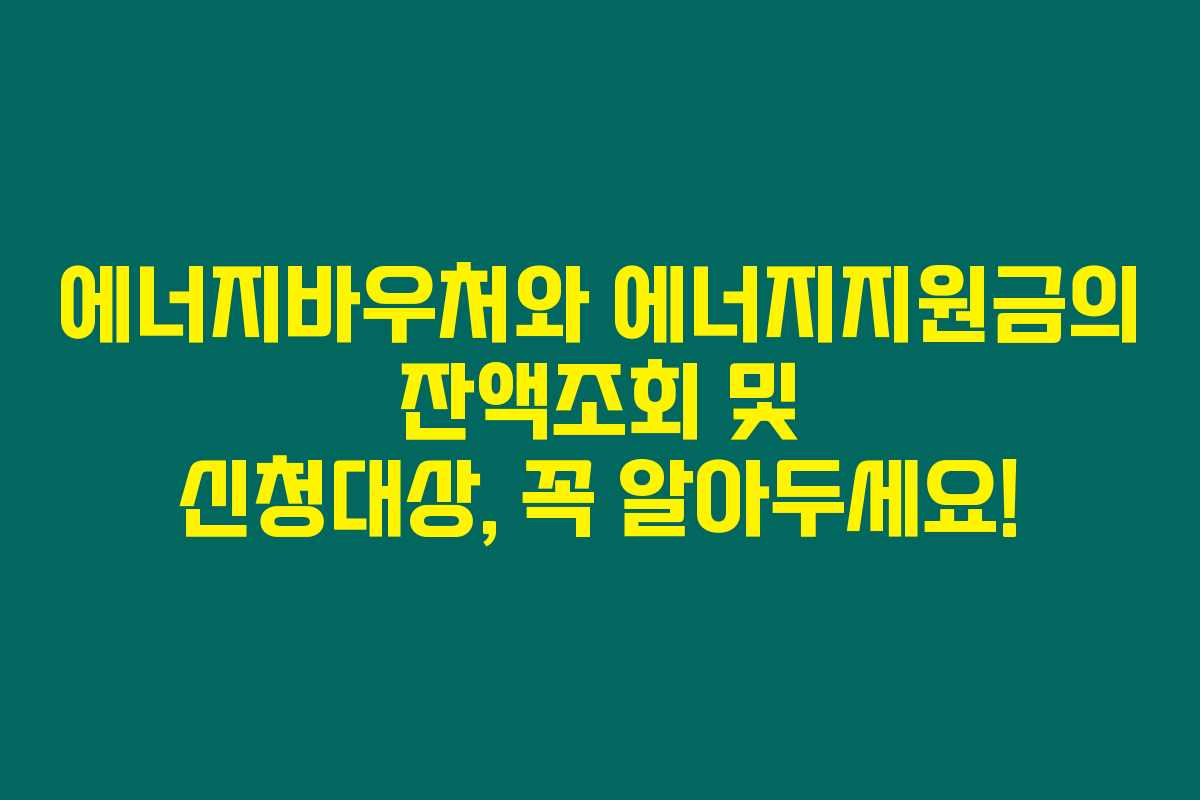 에너지바우처와 에너지지원금의 잔액조회 및 신청대상, 꼭 알아두세요!