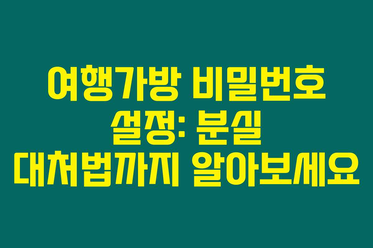 제가 알아본 바로는, 여행가방의 비밀번호 설정은 안전한 여행을 위한 필수 조치인데요. 여행 중 가방을 잃어버리거나 도난당하지 않기 위해서는 비밀번호를 제대로 설정하고 관리하는 것이 중요해요. 아래를 읽어보시면 여행가방의 비밀번호 설정 방법과 초기화, 분실했을 때의 대처 방법에 대한 정보를 쉽게 이해할 수 있을 거예요.