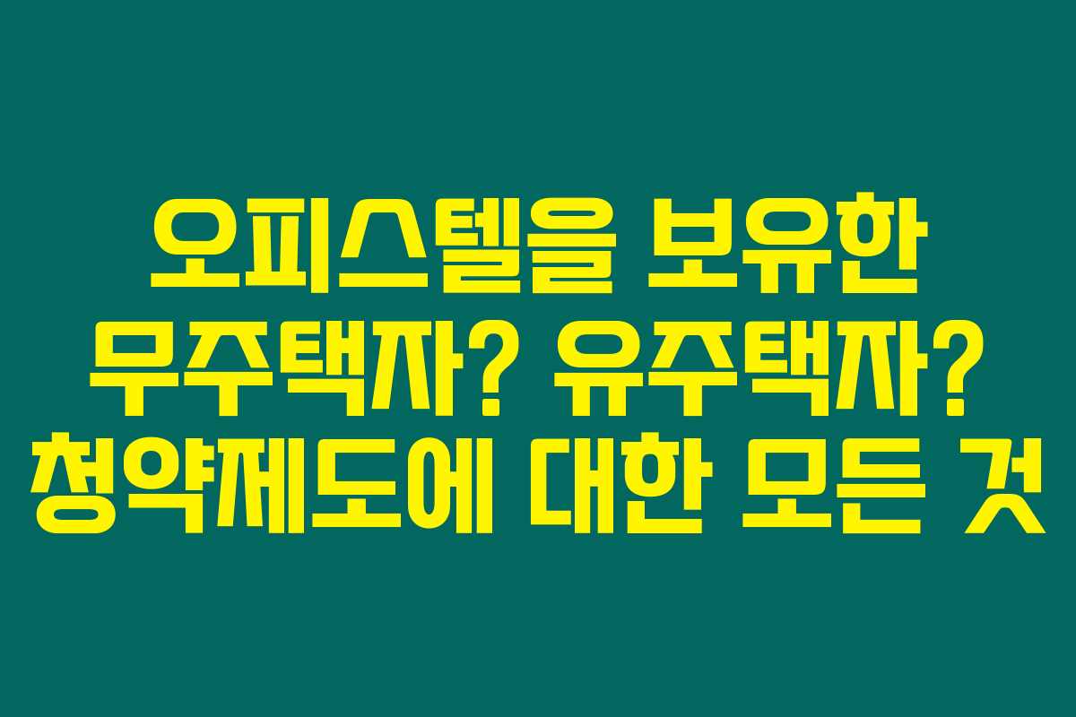 무주택 상태에서 청약을 생각하시는 분들 많죠? 하지만 오피스텔을 소유하고 있다면 청약 시 어떻게 될지 궁금한 점들이 많을 거예요. 오늘 이 글을 통해 오피스텔 보유자와 청약제도에 대해 자세히 알아보려고 해요. 아래를 읽어보시면 청약 제도의 핵심과 조건들에 대해 쉽게 이해할 수 있을 거예요!