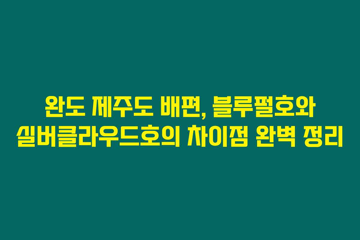 지금 이 글을 통해 완도와 제주를 오가는 배편인 블루펄호와 실버클라우드호를 끝장 분석해 볼게요. 비교를 통해 자신에게 더 맞는 배편을 선택하는 데 큰 도움이 될 거예요!