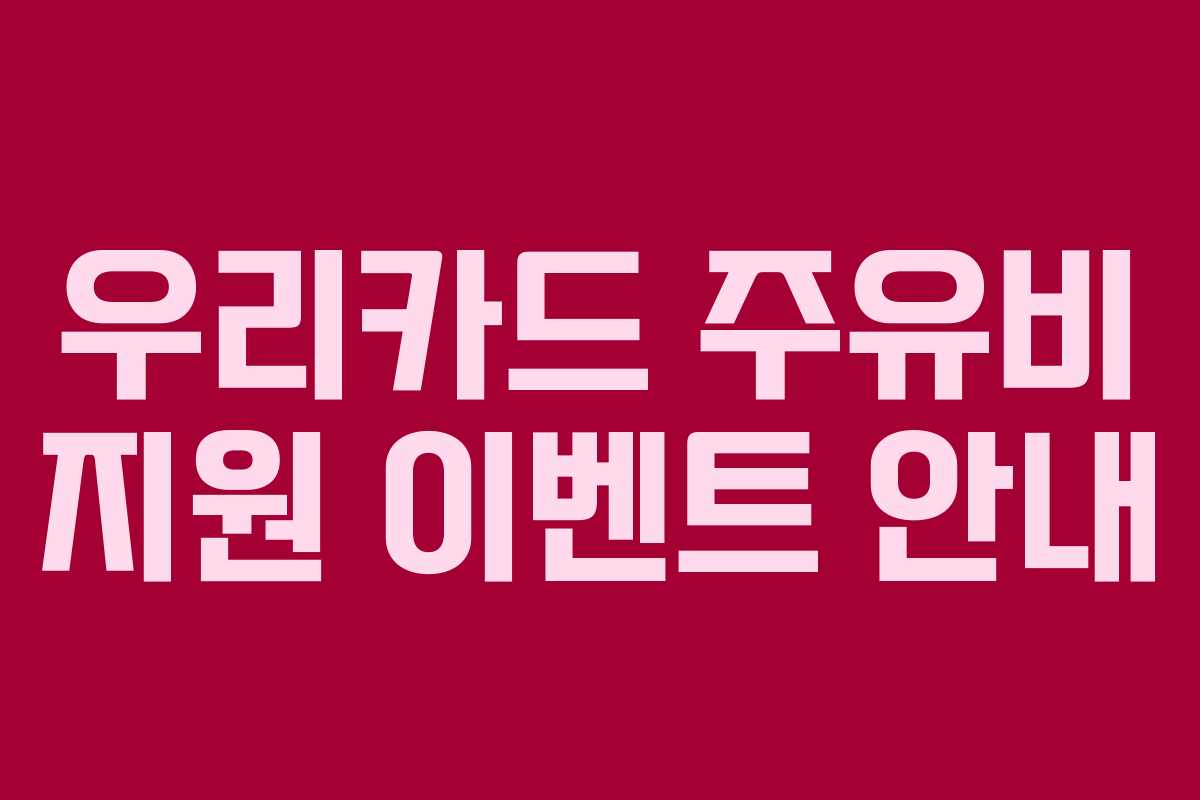 우리카드에서 진행하는 주유비 지원 이벤트는 카드 고객들에게 유익한 혜택을 제공합니다. 이번 이벤트는 주유비 지원을 통해 고객들의 경제적 부담을 덜어주고자 마련되었습니다.