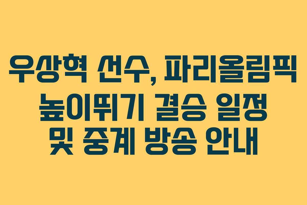 2025 파리올림픽에서 한국의 자랑스러운 높이뛰기 선수 우상혁이 메달 획득에 도전합니다. 그는 예선 경기에서 2m27cm를 넘으며 공동 3위에 올라 기대를 모으고 있습니다. 이번 글에서는 우상혁 선수의 높이뛰기 결승 경기 일정과 중계 방송 정보를 안내해 드리겠습니다.