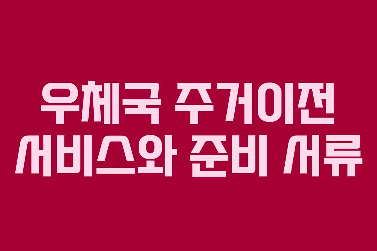 우체국의 주거이전 서비스를 이용하기 위해서는 미리 준비된 서류를 제출해야 합니다. 이 서비스는 기본적으로 온라인 신청이 가능하며, 필요한 서류를 우체국에 직접 제출하여 처리됩니다.