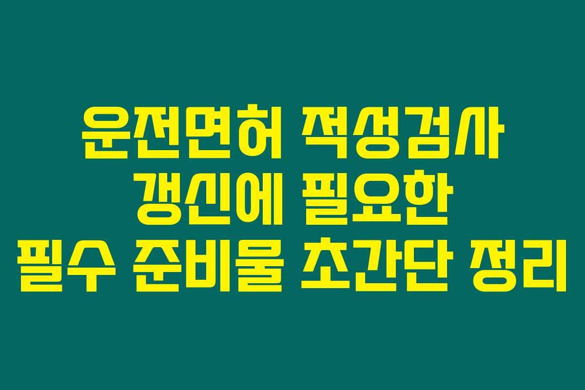 운전면허 적성검사를 준비하고 있나요? 적성검사 기간이 다가오고 있다면 꼭 필요한 정보들을 미리 알아두는 것이 중요합니다. “운전면허 적성검사 갱신 준비물”에 대해 명확하게 정리해드릴게요. 적성검사 준비가 미흡하면 혹시라도 과태료나 면허 취소 등의 불이익을 받을 수도 있으니, 준비물을 잘 챙기는 게 필요해요. 자, 그럼 아래를 읽어보시면 정말 간단한 준비물에 대해서 알아보실 수 있어요.