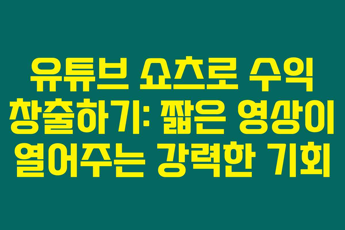 유튜브 쇼츠로 수익 창출하기: 짧은 영상이 열어주는 강력한 기회