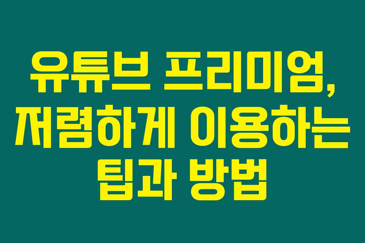 유튜브 프리미엄은 광고 없이 동영상을 감상할 수 있는 매력적인 서비스로, 요즘 많은 사람들이 이용하고 있습니다. 하지만 월정액 비용이 부담스럽다고 느끼시는 분들도 많을거에요. 아래를 읽어보시면 유튜브 프리미엄을 더 저렴하게 이용할 수 있는 여러 가지 팁을 알아보실 수 있습니다.