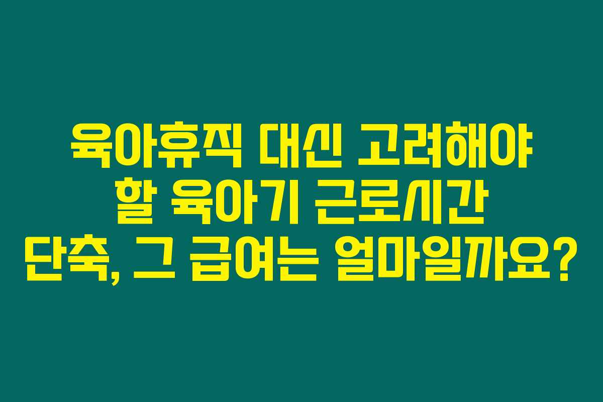 육아휴직 대신 고려해야 할 육아기 근로시간 단축, 그 급여는 얼마일까요?