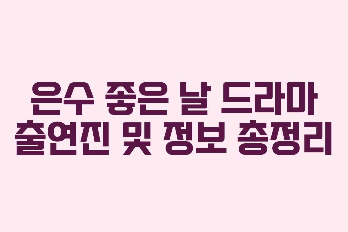 KBS2TV에서 방영될 드라마 은수 좋은 날에 대한 관심이 뜨겁습니다. 이 드라마는 이영애가 주연으로 출연하며, 다양한 인물들이 얽히는 복잡한 스릴러 범죄 이야기를 담고 있습니다. 이번 포스트에서는 드라마의 출연진, 방영 정보 및 몇 부작인지에 대해 자세히 알아보겠습니다.