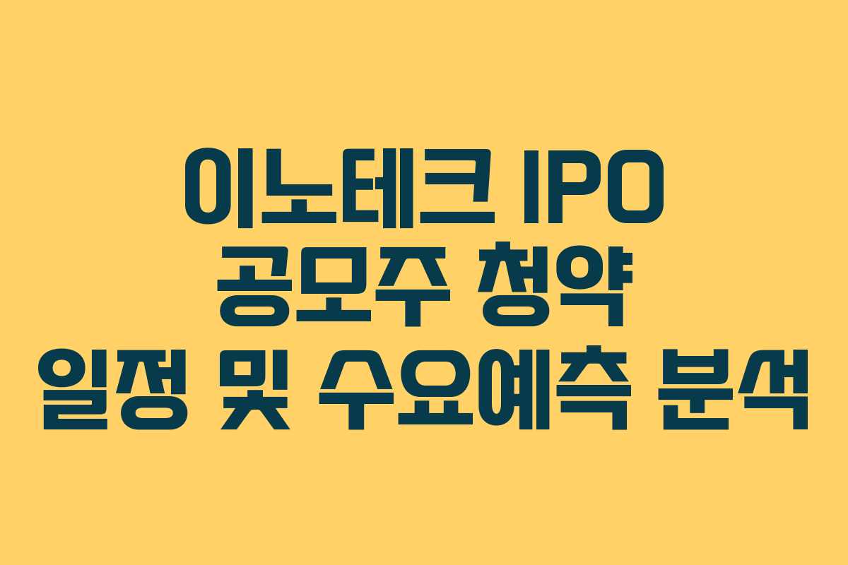 이노테크의 IPO 청약은 많은 관심을 받고 있으며, 충분한 정보와 준비를 통해 성공적인 투자 기회를 잡으시기 바랍니다.
