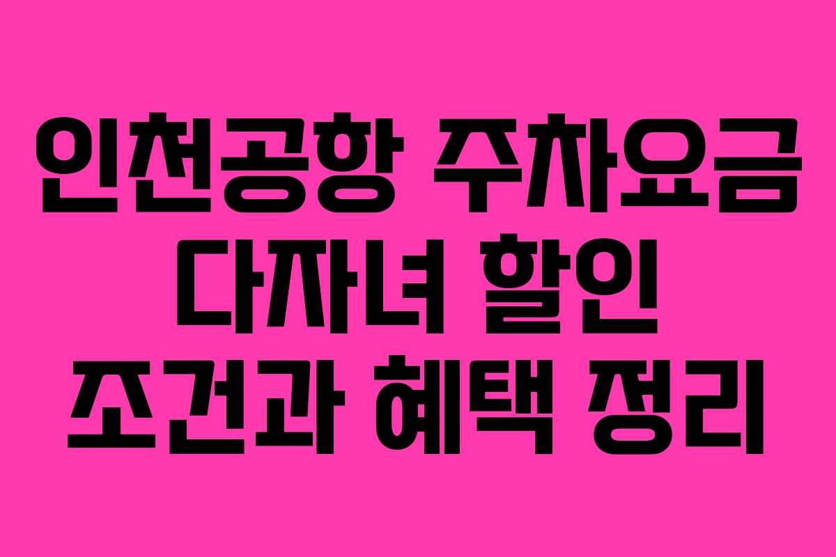 인천공항 주차요금에서 다자녀 할인을 받기 위해서는 몇 가지 조건을 충족해야 합니다. 기본적으로 2자녀 이상을 둔 가구가 할인 대상이지만, 여기에는 중요한 조건이 있습니다.