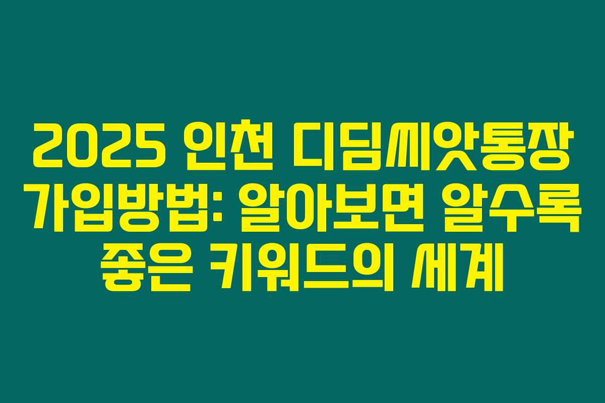 인천 디딤씨앗통장 신청방법은 온라인 및 오프라인 모두 가능해요. 제가 직접 체크해본 바로는 인천시 또는 구청 창구에서 친절한 상담을 받을 수 있습니다.