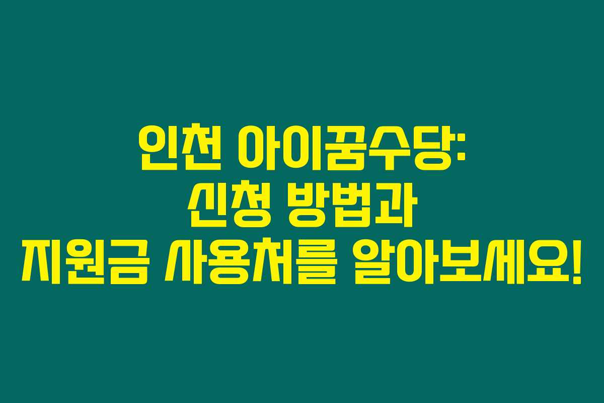 인천 아이꿈수당은 아동 양육에 큰 도움이 되는 정책이에요. 신청 방법부터 사용처, 즉시 지원받는 방법까지 잘 숙지하시고 알차게 이용하시길 바랍니다. 부모님들의 경제적 부담을 덜 수 있는 기회로 활용해 보세요!