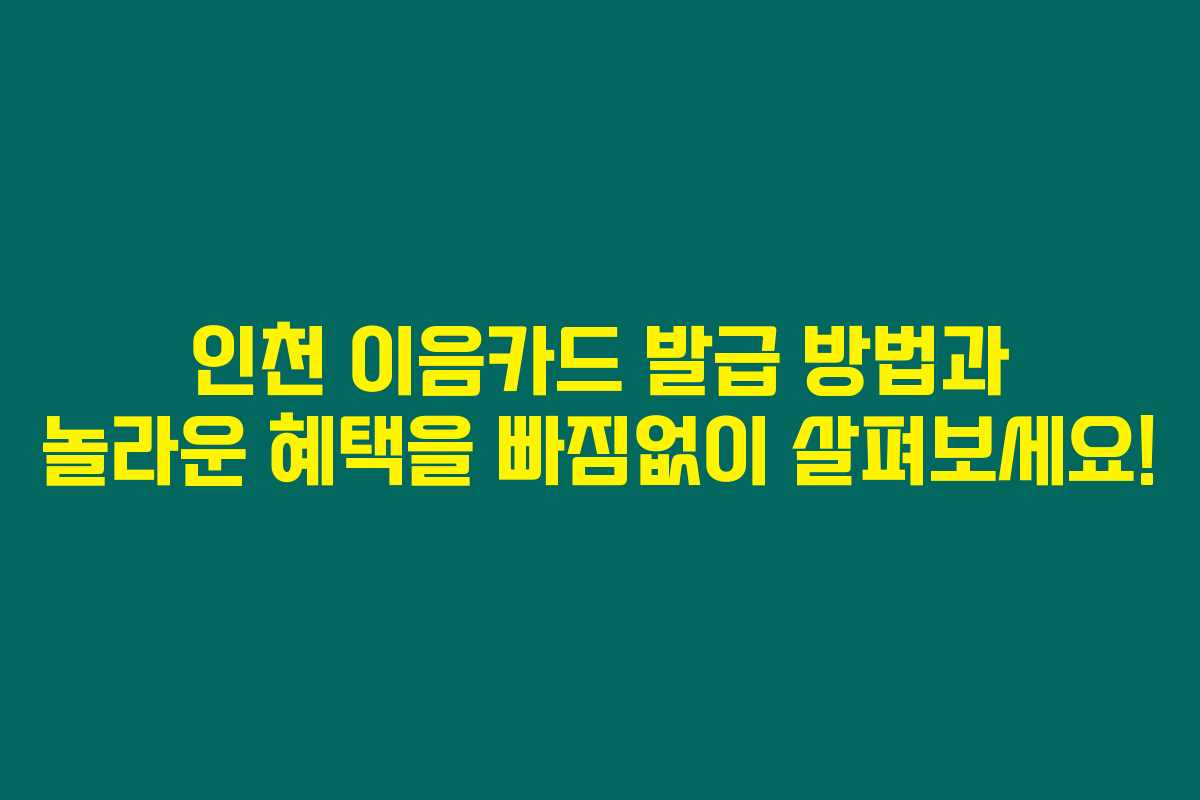 인천 이음카드 발급 방법과 놀라운 혜택을 빠짐없이 살펴보세요!