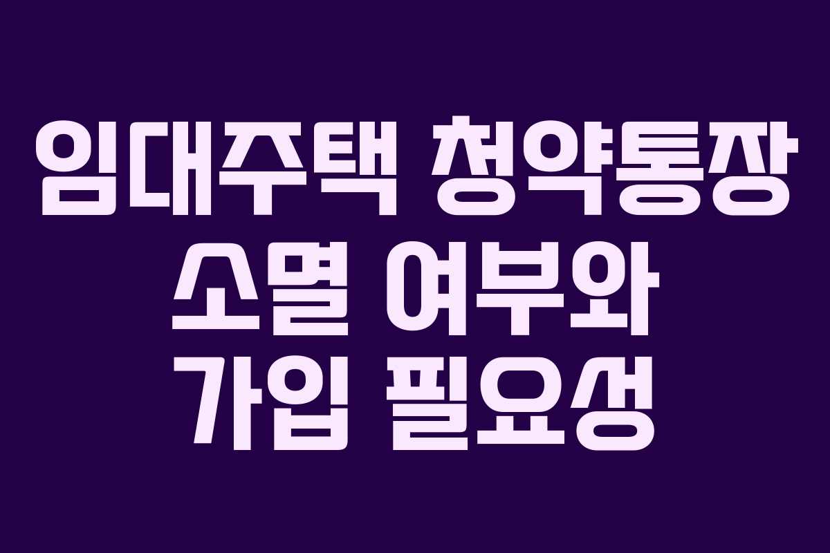 임대주택 청약통장 소멸 여부와 가입 필요성