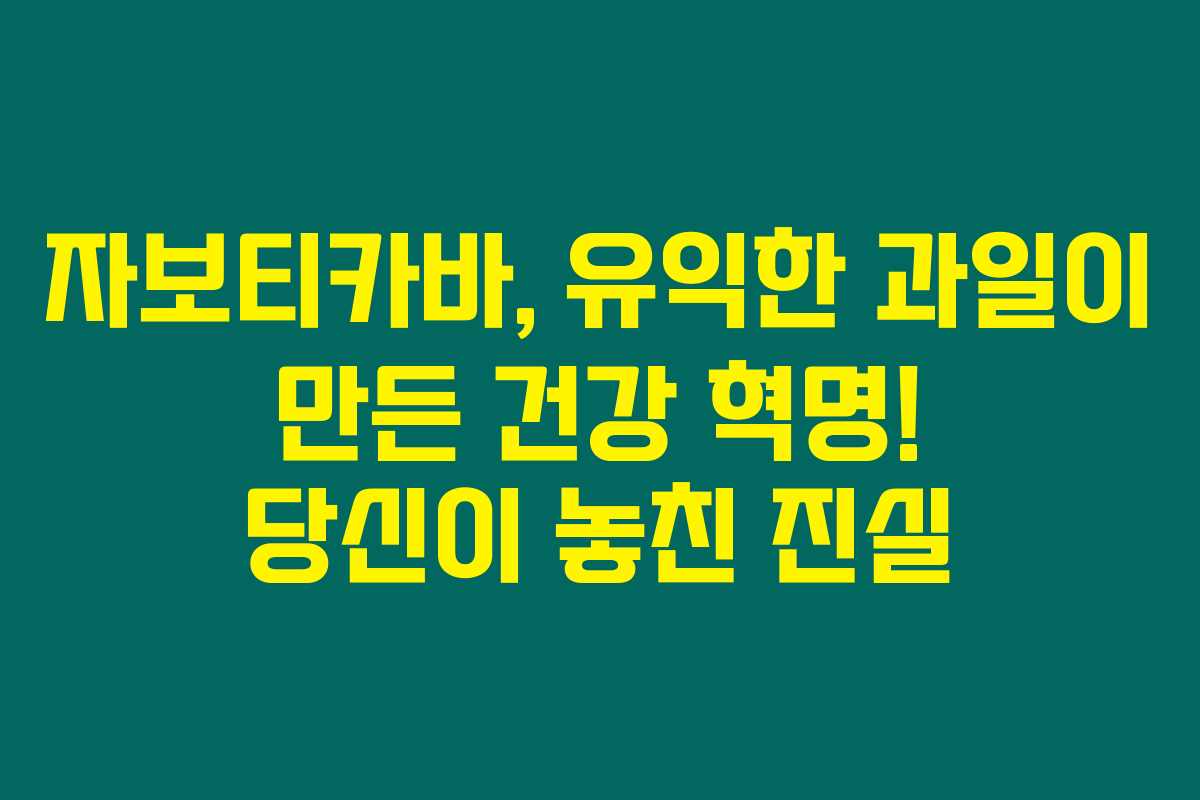 자보티카바, 유익한 과일이 만든 건강 혁명! 당신이 놓친 진실