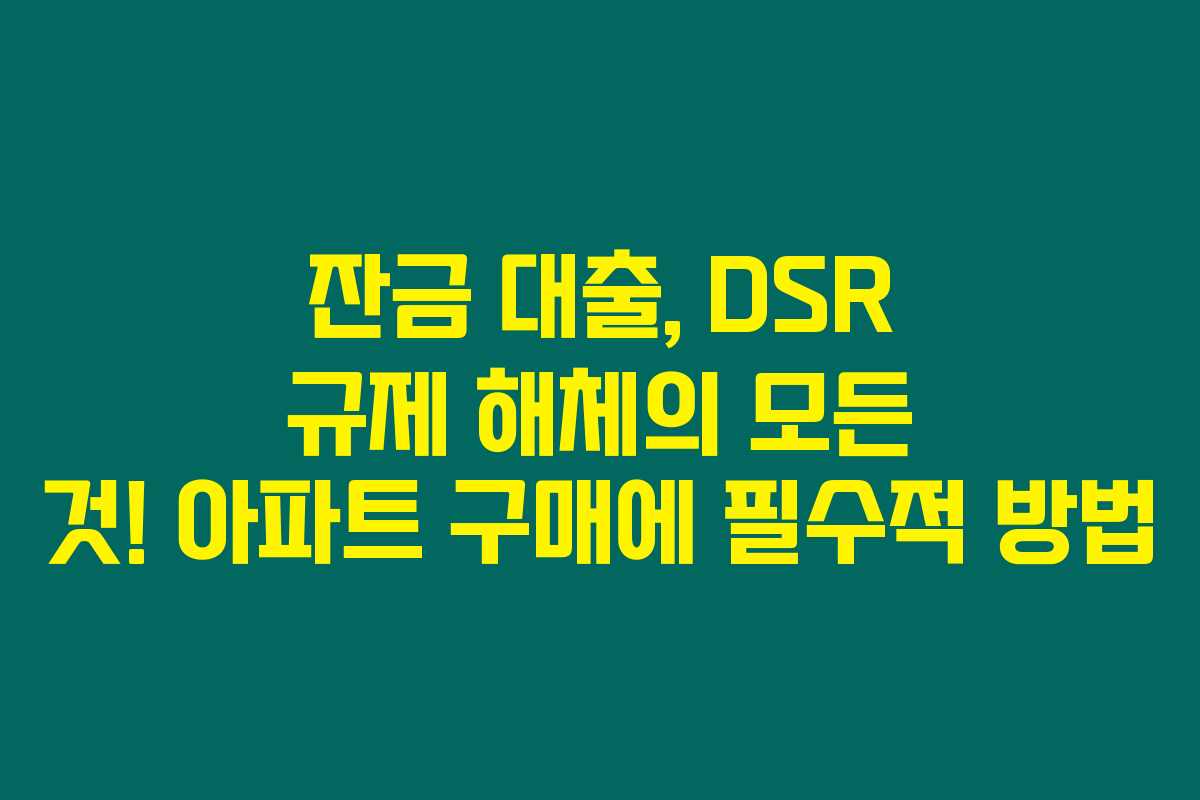 제가 직접 체크해본 바로는, 아파트 구매를 위한 잔금 대출은 많은 분들이 가장 궁금해하는 주제 중 하나입니다. 특히 DSR(총부채상환비율) 규제가 강화되면서 대출 한도가 심각하게 영향을 받고 있는 요즘, 정확한 정보를 아는 것이 중요하답니다. 아래를 읽어보시면 잔금 대출의 방법, 한도, DSR 규제에 대한 궁금증 해결과 더불어 신축 아파트 잔금 대출 관련 정보까지 한 번에 확인하실 수 있답니다.