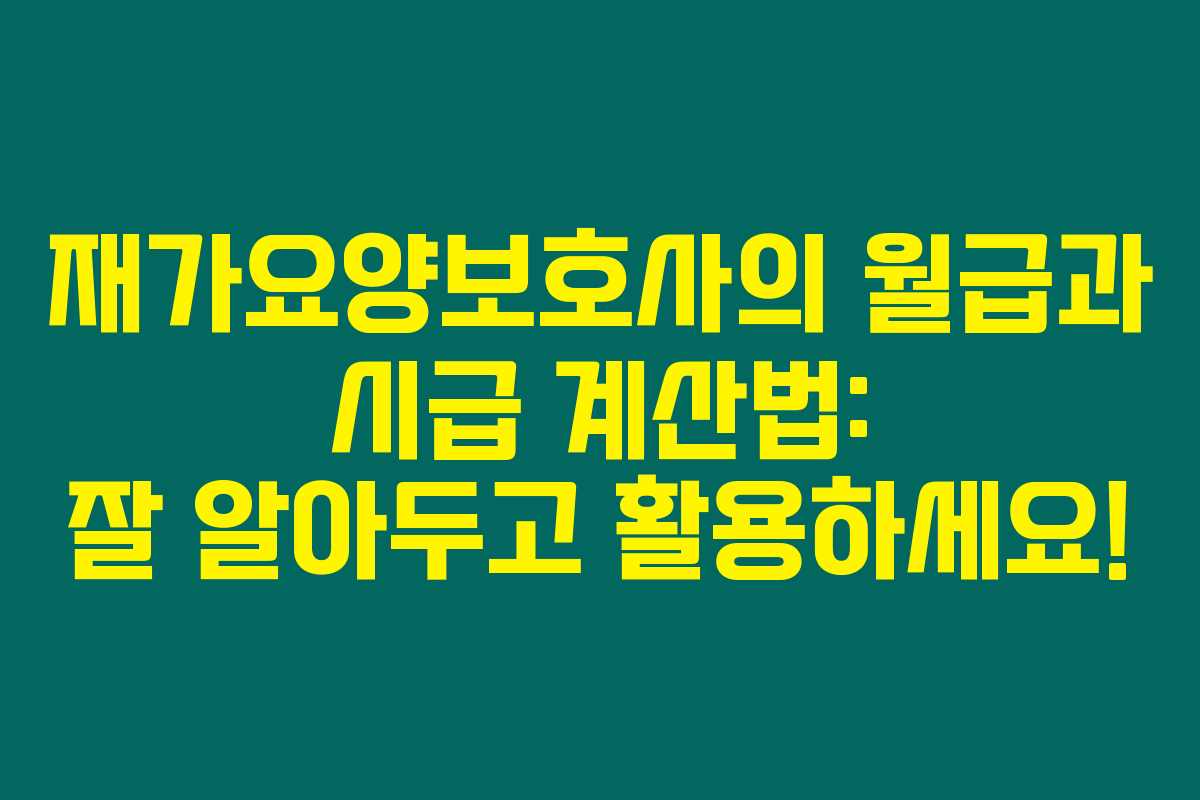 재가요양보호사로 일하는 분들을 위해, 해당 직업의 월급 및 시급 계산 방법을 깊이 있게 안내하려고 해요. 제가 직접 경험해본 바로는, 시급과 주휴수당, 연차수당 등 여러 요소를 고려해야 정확한 월급을 산정할 수 있더라고요. 그럼 이 내용을 아래에서 자세히 알아보도록 해요.