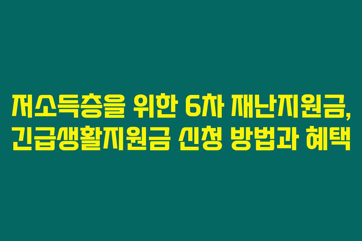 6차 재난지원금은 코로나19로 어려움을 겪고 있는 저소득층 가구를 지원하기 위해 정부가 마련한 금융지원 프로그램입니다. 이는 기초생활수급자와 차상위계층을 대상으로 하며, 실질적인 생활비 지원을 통해 기본적인 삶을 유지할 수 있도록 돕고자 하는 목적이 있지요.