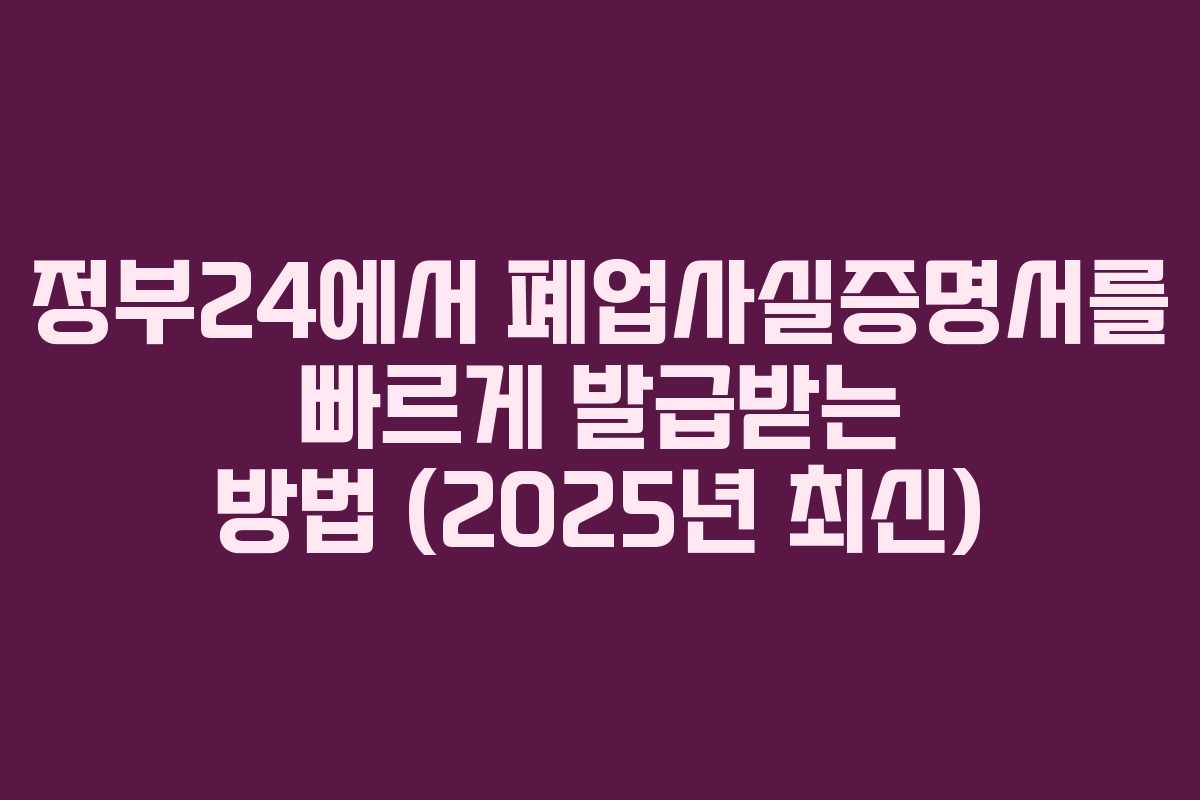 이 정보를 참고하여 정부24를 통해 폐업사실증명서를 빠르고 쉽게 발급받으시기 바랍니다.