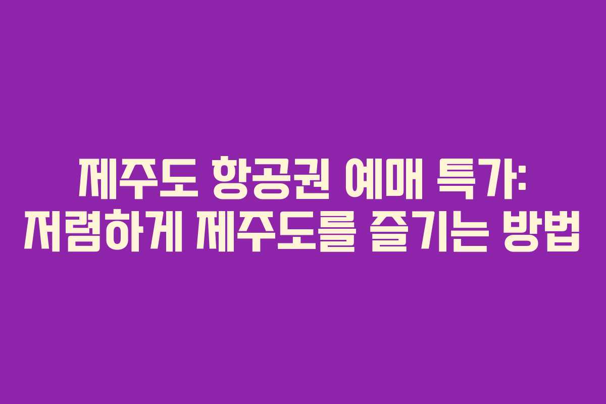 제주도 항공권 예매 특가: 저렴하게 제주도를 즐기는 방법