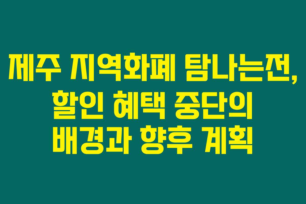제주 지역화폐 탐나는전의 할인 혜택 중단은 지역 경제에는 아쉬운 일이지만, 관광객들에게는 새로운 예산 계획과 소비 계획이 필요할 것입니다. 제주 도민은 물론 관광객들 모두가 혜택을 재고할 수 있는 기회가 되기를 바랍니다.
