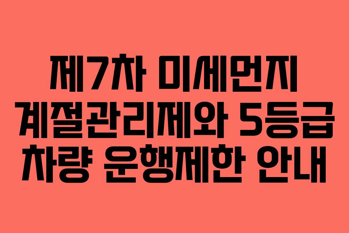 제7차 미세먼지 계절관리제는 미세먼지 저감을 위해 특정 기간 동안 5등급 차량의 운행을 제한하는 제도입니다. 이는 대기질을 개선하기 위한 정책의 일환으로 시행됩니다.