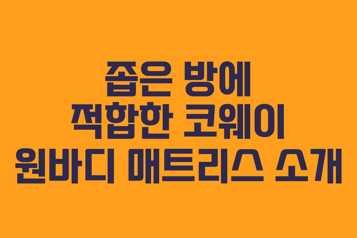 좁은 방에서도 아늑하고 편안한 수면 환경을 제공할 수 있는 코웨이의 원바디2 매트리스는 여러분의 생활을 더욱 풍부하게 만들어 줄 것입니다. 제품에 대한 상세한 설명과 상담은 온라인 코웨이 공식 인증몰에서 가능합니다.