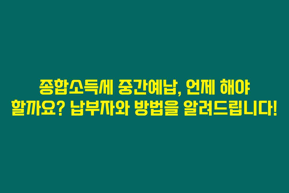 저는 직접 확인해본 결과로는, 종합소득세 중간예납의 기본 납부대상자는 종합소득이 있는 사업자에 해당해요. 하지만 코로나19나 자연재해 등으로 세금을 납부하기 어려운 경우에는 특별한 혜택을 받기도 해요.