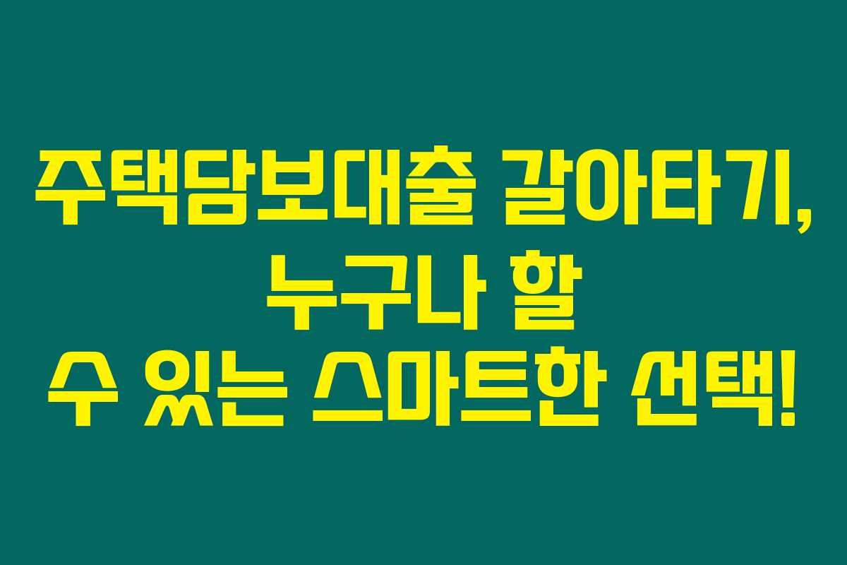 주택담보대출 갈아타기, 누구나 할 수 있는 스마트한 선택!