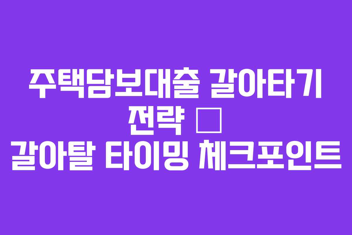 주택담보대출을 갈아타는 대환대출은 기존 대출을 더 낮은 금리나 유리한 조건으로 변경하는 방법입니다. 이를 통해 이자 부담을 크게 줄일 수 있는 기회가 됩니다. 이번 글에서는 대환대출의 개념과 갈아탈 타이밍, 실제 절약 사례, 직장인과 자영업자의 대환 전략, 그리고 체크리스트를 제시합니다.