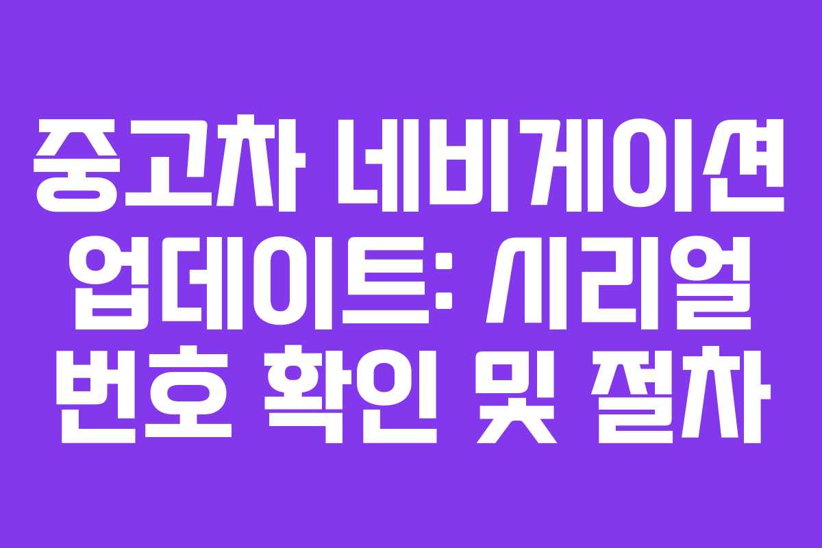 중고차 구매 후 네비게이션 업데이트를 위해 시리얼 번호를 확인해야 하는 경우가 많습니다. 이 글에서는 중고차 구매자들이 겪는 시리얼 번호 확인 방법과 중복 인증, 업데이트 절차에 대해 자세히 설명하겠습니다.