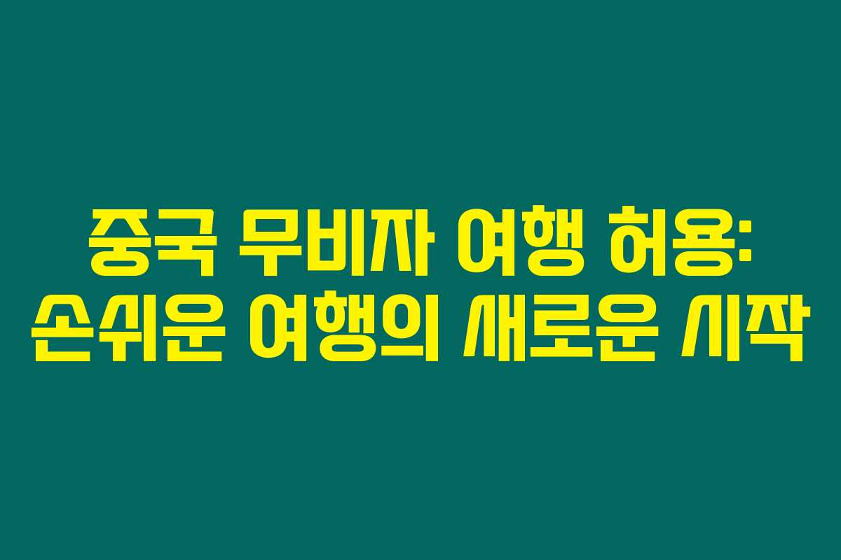 중국의 무비자 여행 허용은 많은 여행자에게 큰 기회를 제공합니다. 이 정책이 시행되면, 더욱 많은 사람들이 중국의 매력을 경험할 수 있게 될 것입니다. 무비자 정책을 활용한 여행 준비에 만전을 기하고, 체류 기간과 규정을 준수하여 즐거운 중국 여행을 계획해 보세요!