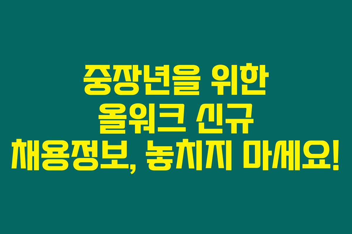 중장년을 위한 올워크 신규 채용정보, 놓치지 마세요!