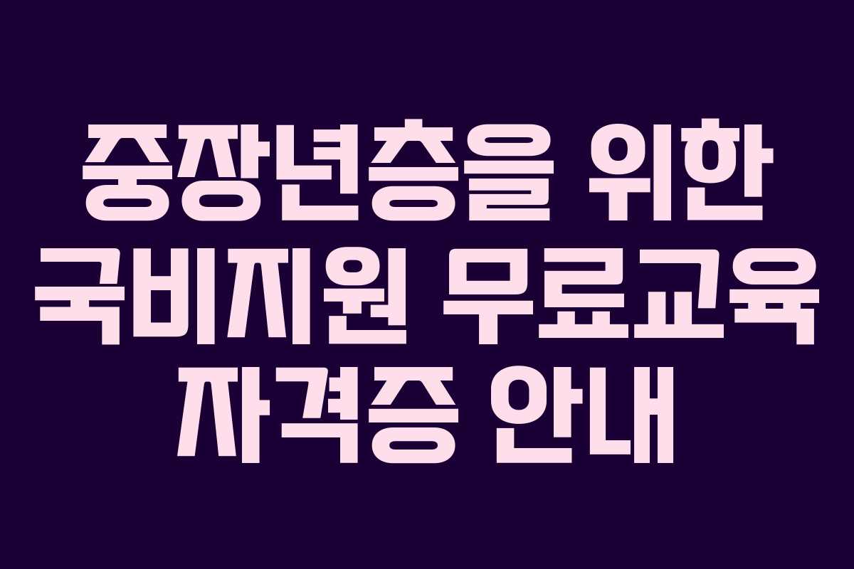 중장년층 국비지원 무료교육 자격증은 새로운 커리어를 시작하거나 경력을 전환하는 데 강력한 도구가 될 수 있습니다. 각 자격증마다 필요한 학습 시간이 다르지만, 체계적인 지원과 커리큘럼 덕분에 누구나 도전할 수 있습니다. 지금 바로 자신의 관심 분야를 찾아 국비지원 교육 프로그램에 도전해 보세요. 제2의 인생 설계를 위한 첫걸음이 될 것입니다.