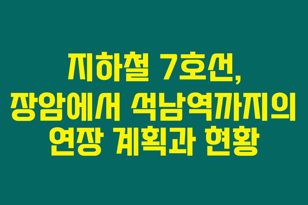 제가 직접 경험해본 결과로는, 지하철 7호선은 서울과 인천을 연결하는 주요 교통수단으로 매우 중요한 역할을 하고 있습니다. 장암역에서 석남역까지 연장이 진행되고 있다는 소식은 많은 시민들이 연일 관심을 기울이는 주제인데요, 아래를 읽어보시면 지하철 7호선의 노선도와 연장 계획에 대해 자세히 알아볼 수 있습니다.