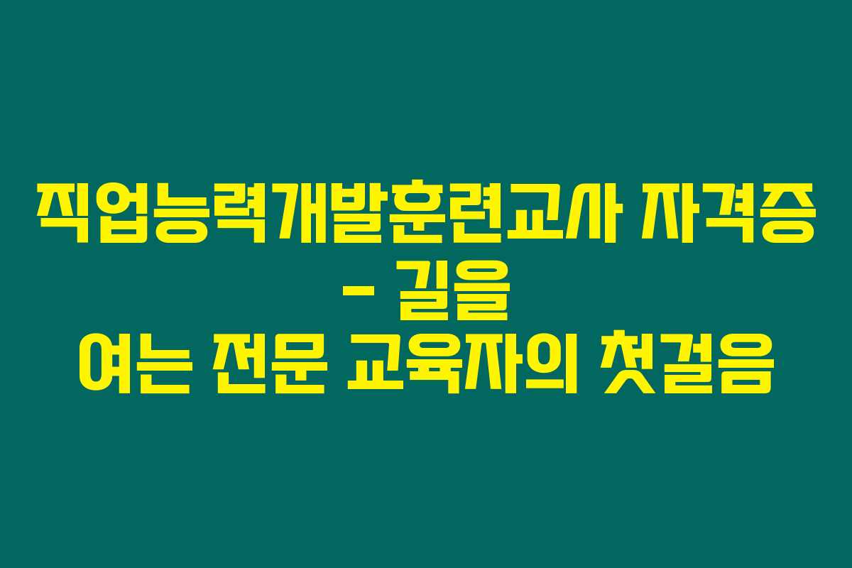 직업능력개발훈련교사 자격증은 다양한 가능성과 함께 자신의 진로를 설계할 수 있는 길을 열어줍니다. 여러분도 이 기회를 통해 자신만의 가치 있는 경로를 찾아보세요!